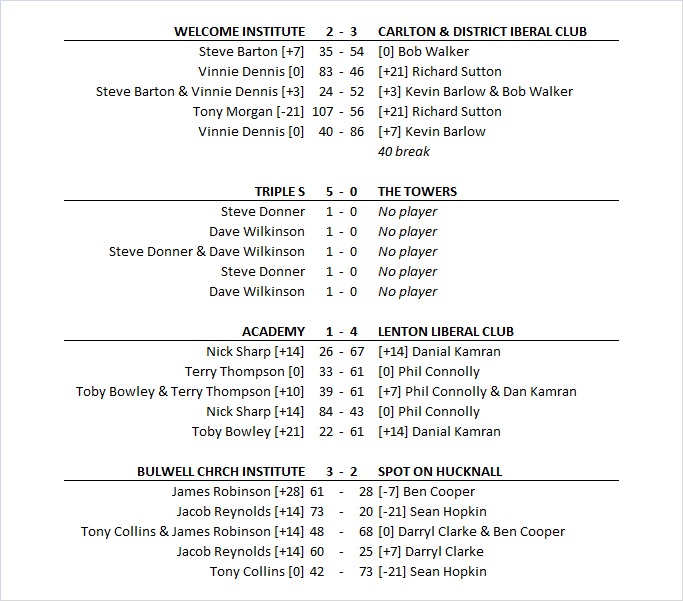 | 28/07/2025 | Bulwell Church Institute | Carlton & District Liberal Club |