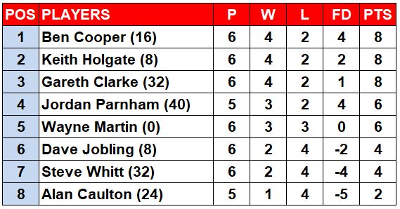 Keith Holgate (8) v Dave Jobling (8) (date TBC)