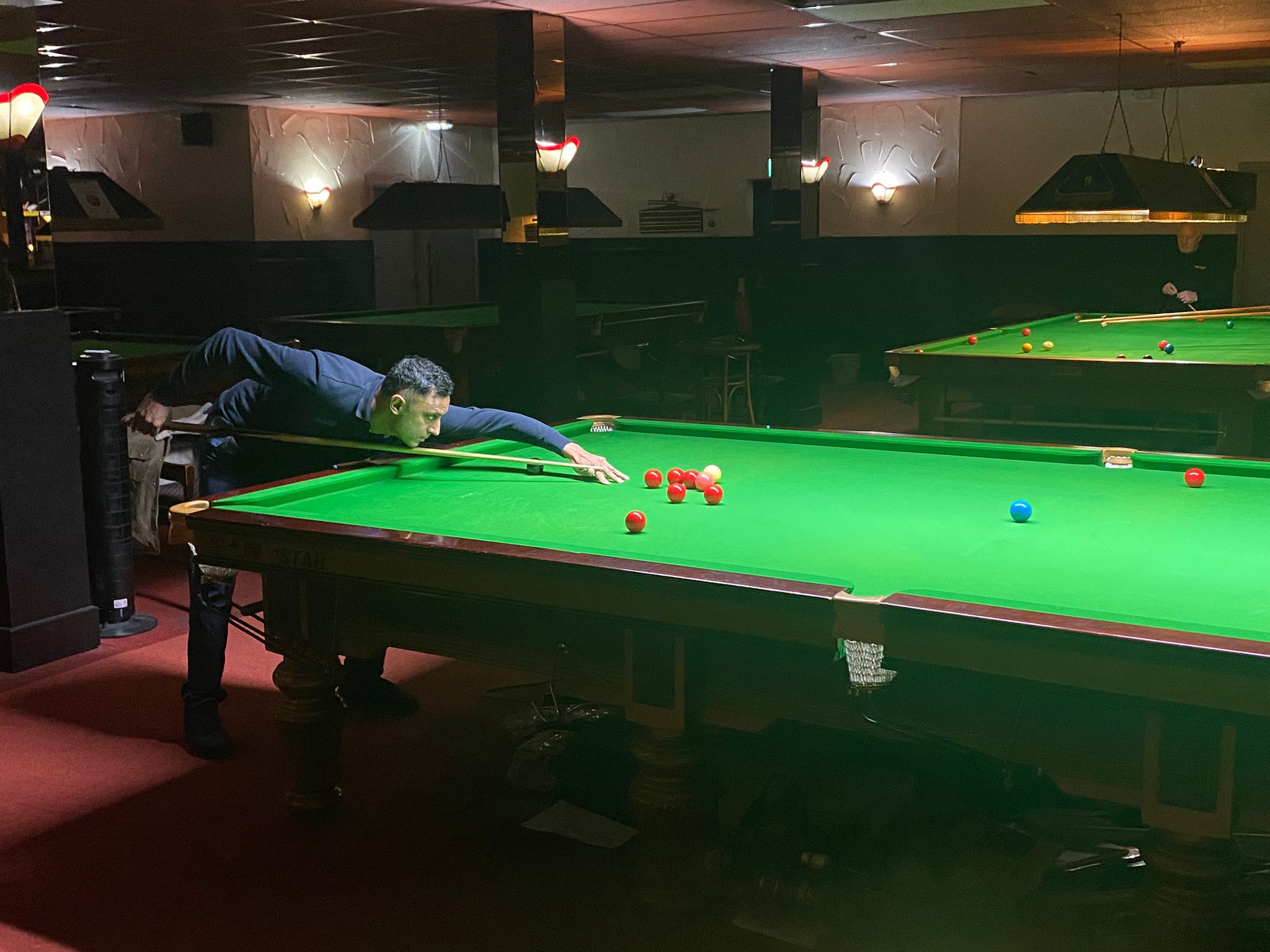 Nav was in early with a run of 20. Later in the frame a lovely 36 break from Nav was enough to take the frame and a 3-1 lead in the match.